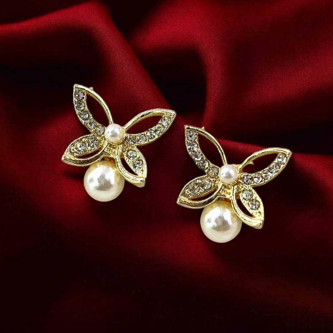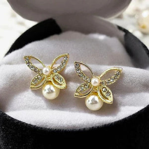 These elegant Butterfly/Pearl Tops feature a delicate butterfly design adorned with sparkling rhinestones. A shimmering pearl hangs gracefully from the center of each butterfly, adding a touch of timeless elegance. The earrings are crafted from high-quality materials, ensuring both durability and a luxurious luster.