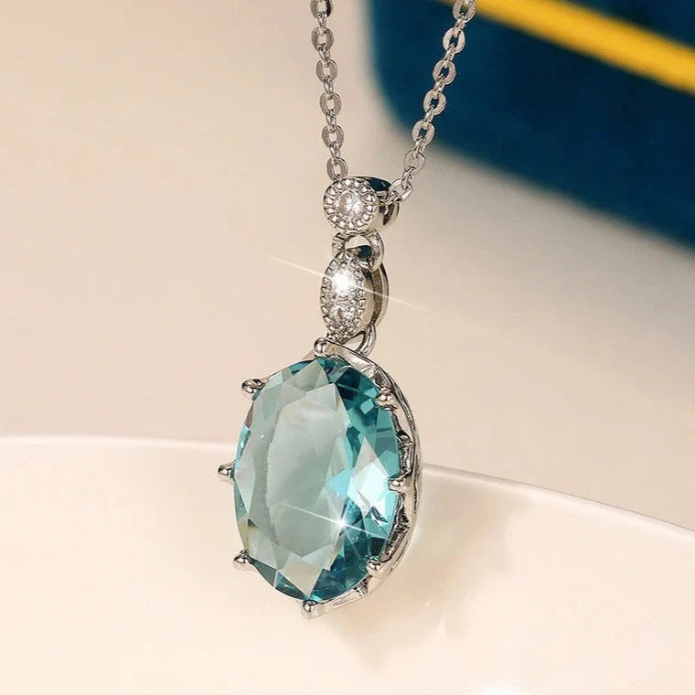 - Captivating Crystal: The pendant features a stunning oval-shaped crystal in a mesmerizing blue color.