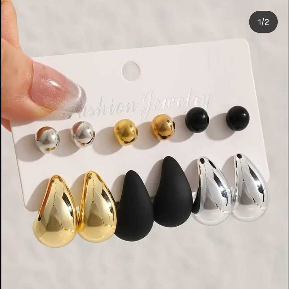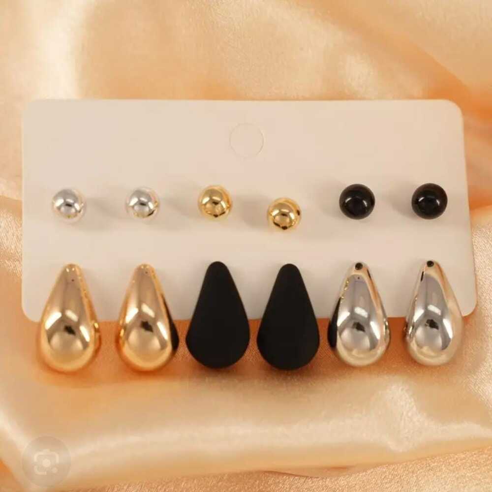- 6 Unique Pairs – 3 stud styles + 3 water-drop designs.