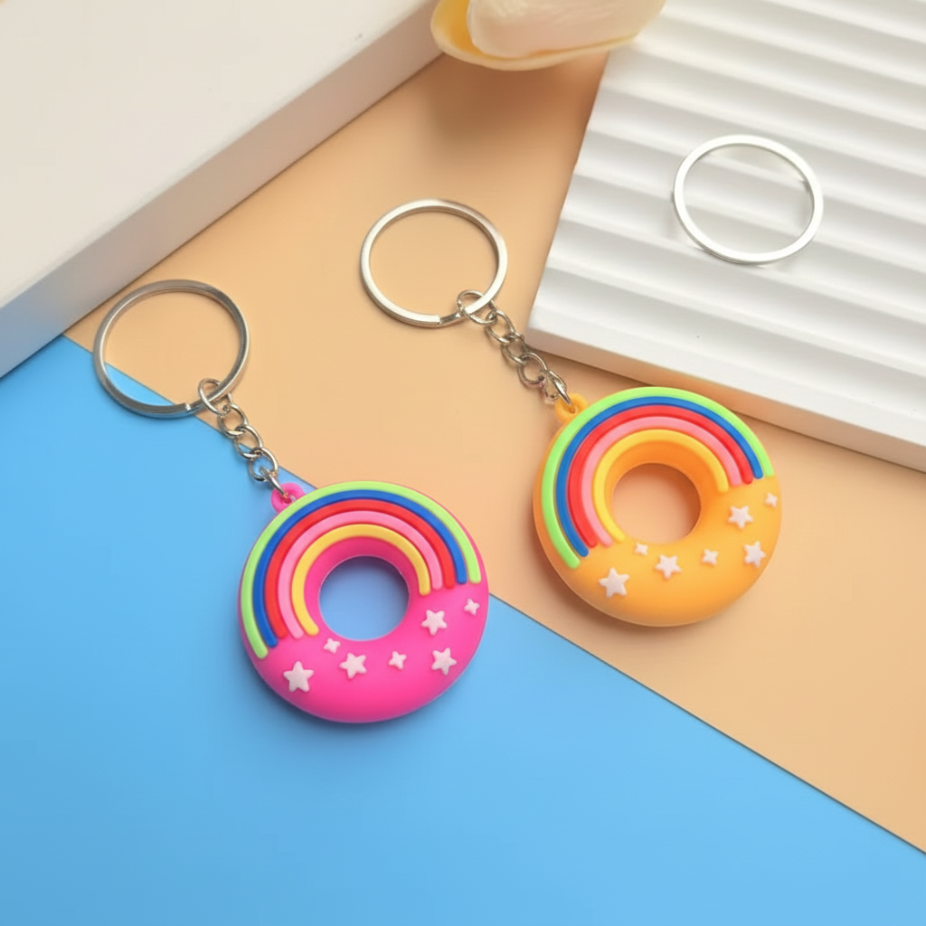 - Pack of 2 [Includes: 2 x Random Colors of 3D Donut Shaped Keychain]