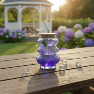 - Material: Tinted high-quality glass, bamboo lid, reusable glass straw