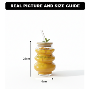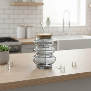 Elevate your hydration experience with the SmokyRippled Glass Tumbler — a chic, wavy glass tumbler with a bamboo lid and reusable glass straw. Crafted from high-quality tinted glass, its elegant rippled design offers a comfortable grip and a modern aesthetic. The eco-friendly bamboo lid ensures a secure seal to prevent spills, while the reusable glass straw makes it perfect for cold beverages like iced coffee, smoothies, juices, detox water, or summer drinks. Ideal for home, office, travel, or café-style serving, this tumbler combines style, functionality, and sustainability in one premium piece.