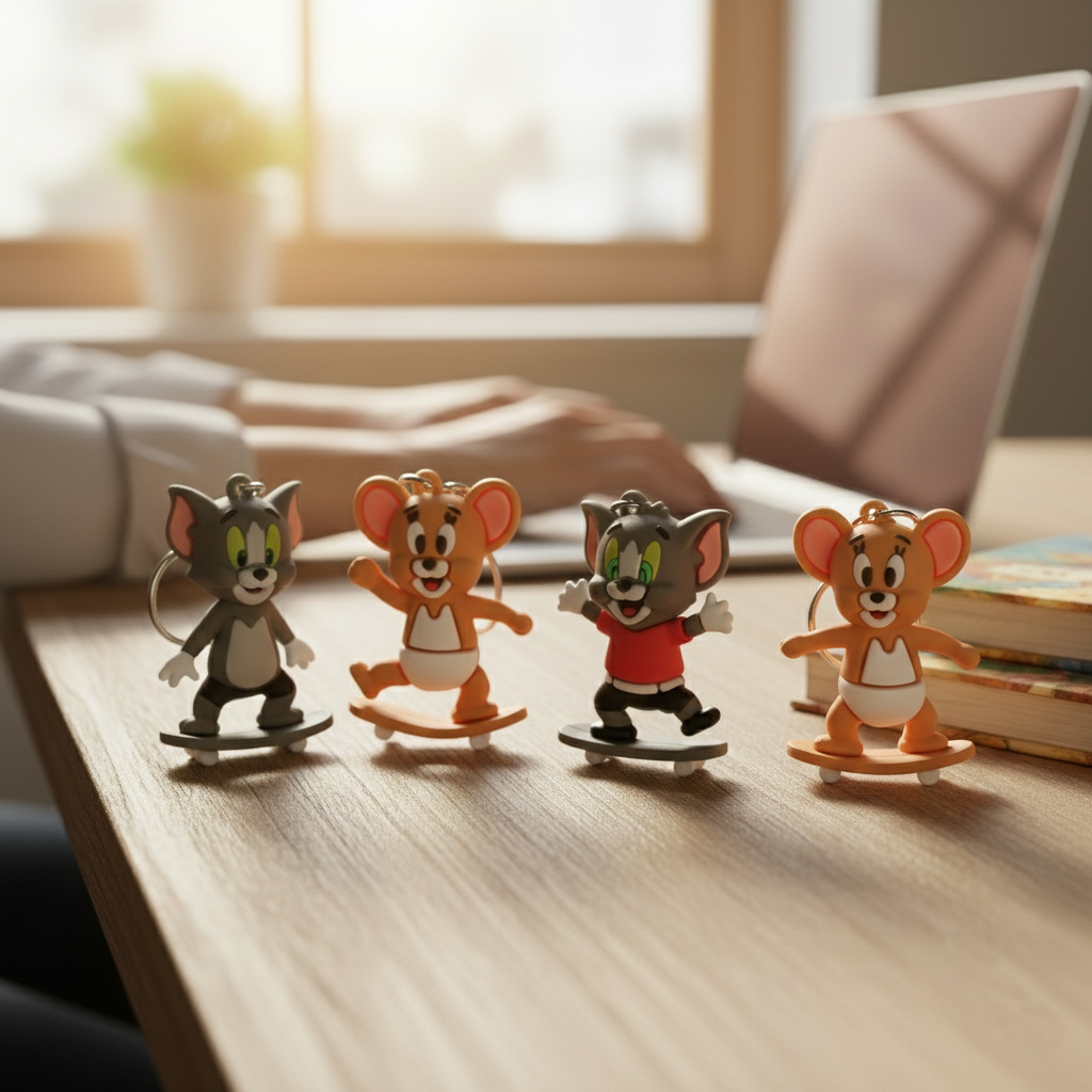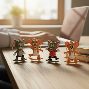 - Pack of 4 [Includes: 2 x Tom on Bicycle Keychain & 2 x Jerry on Skateboard Keychain]