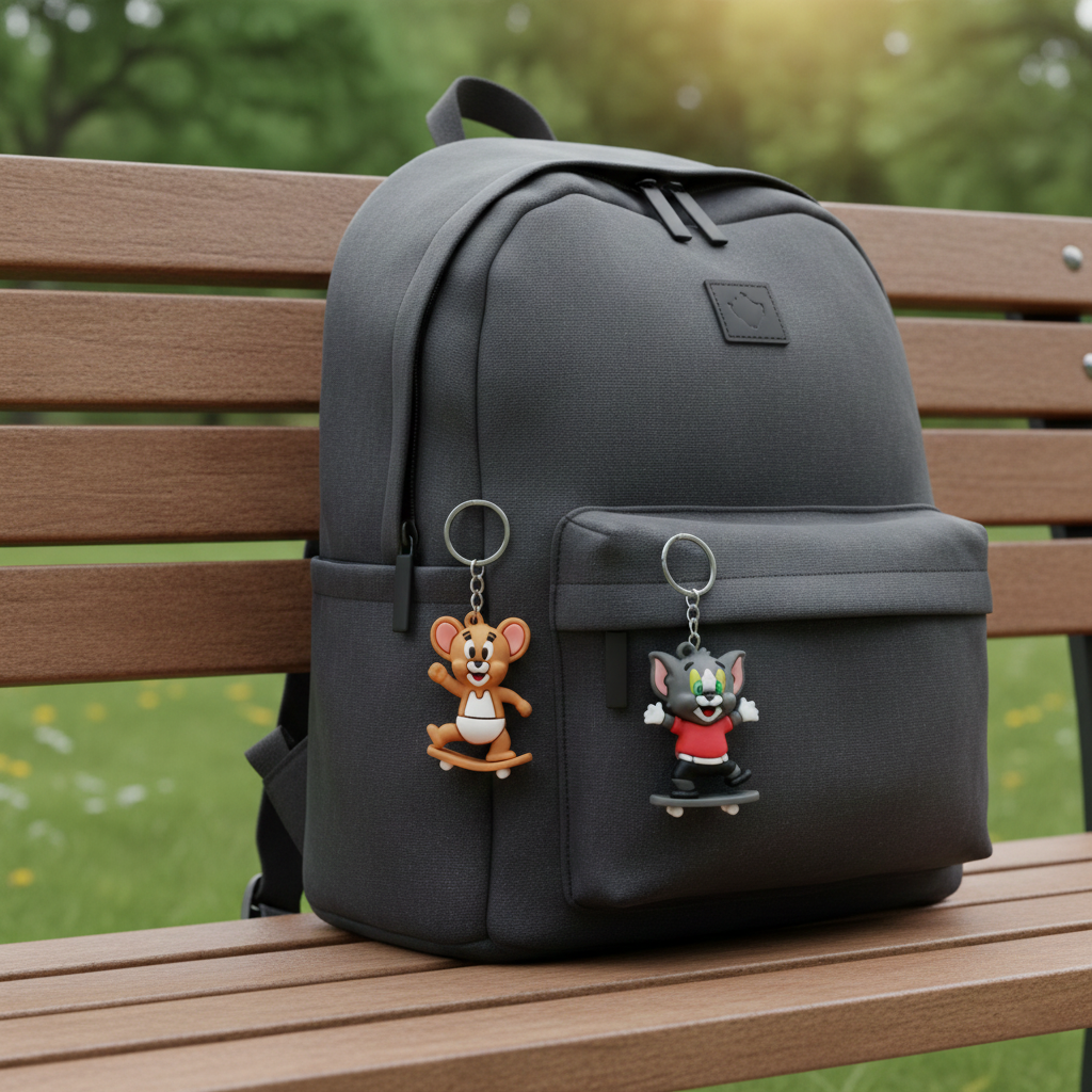 - Pack of 2 [Includes: 1 x Tom on Bicycle Keychain & 1 x Jerry on Skateboard Keychain]