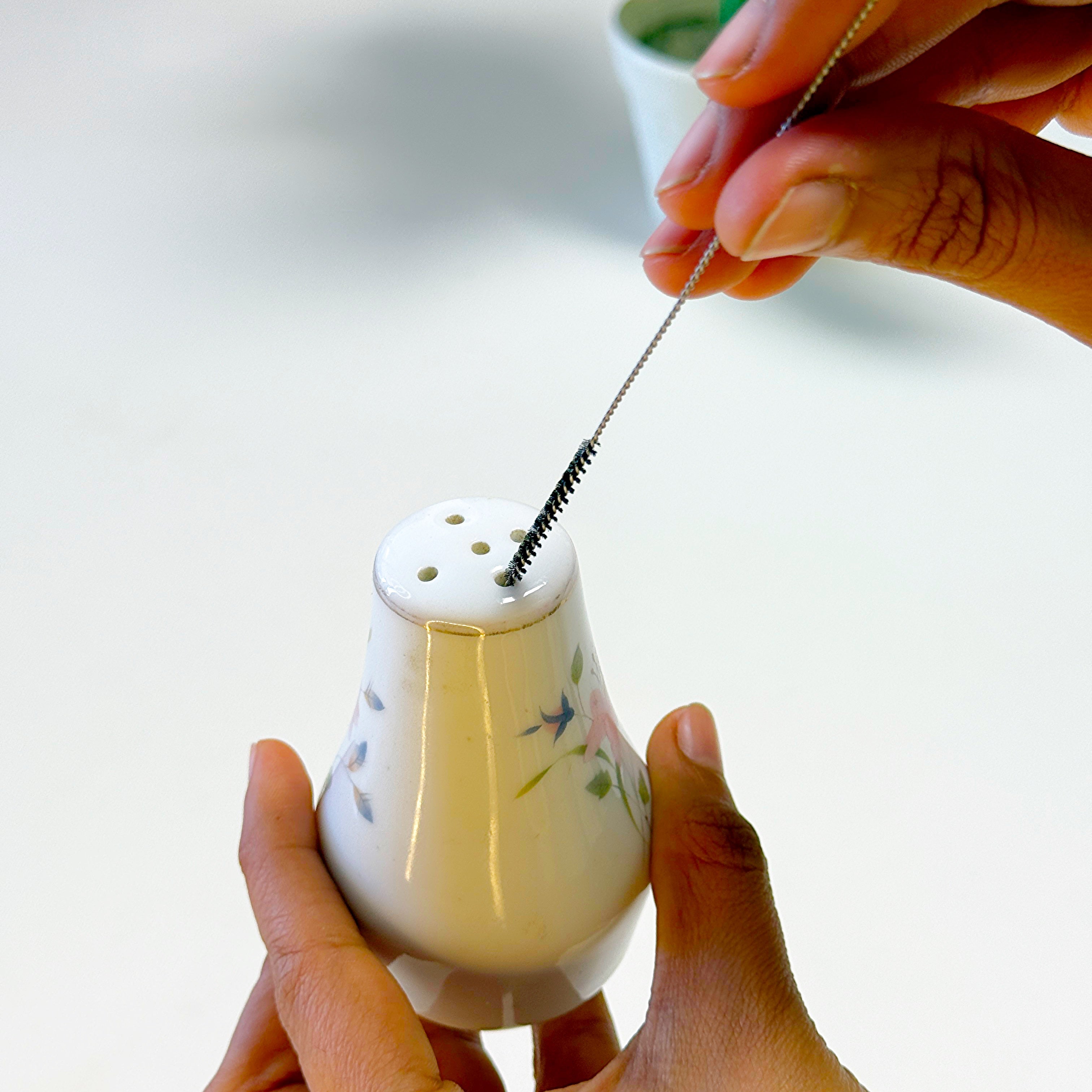 Made of stainless steel and nylon bristles, safe to wash dishes and drink straws. Well-made nylon bristles is also not easy to pluck.