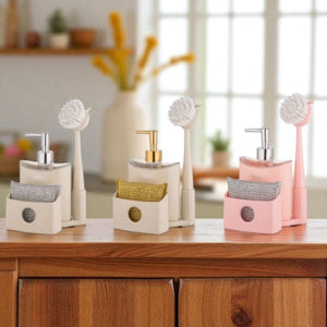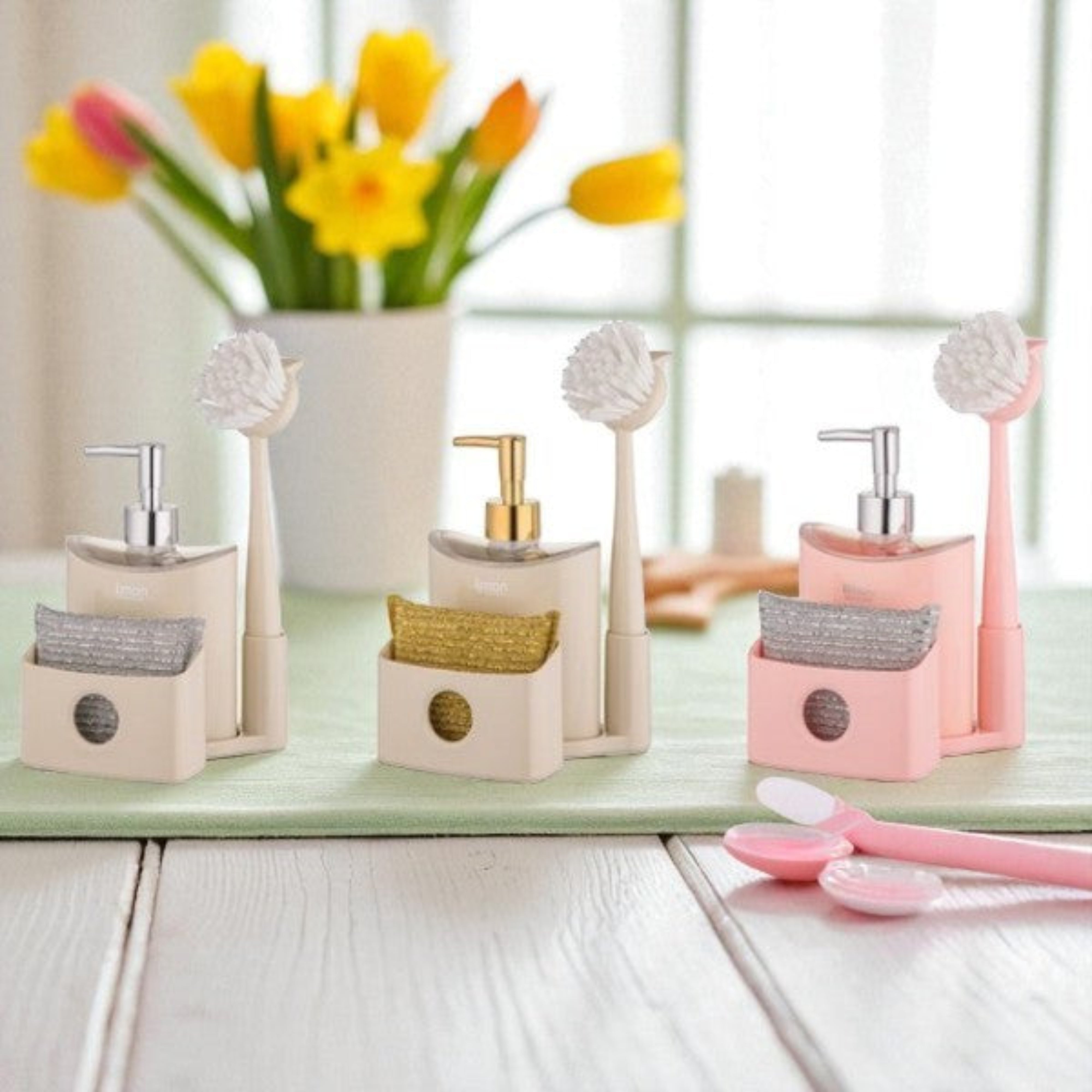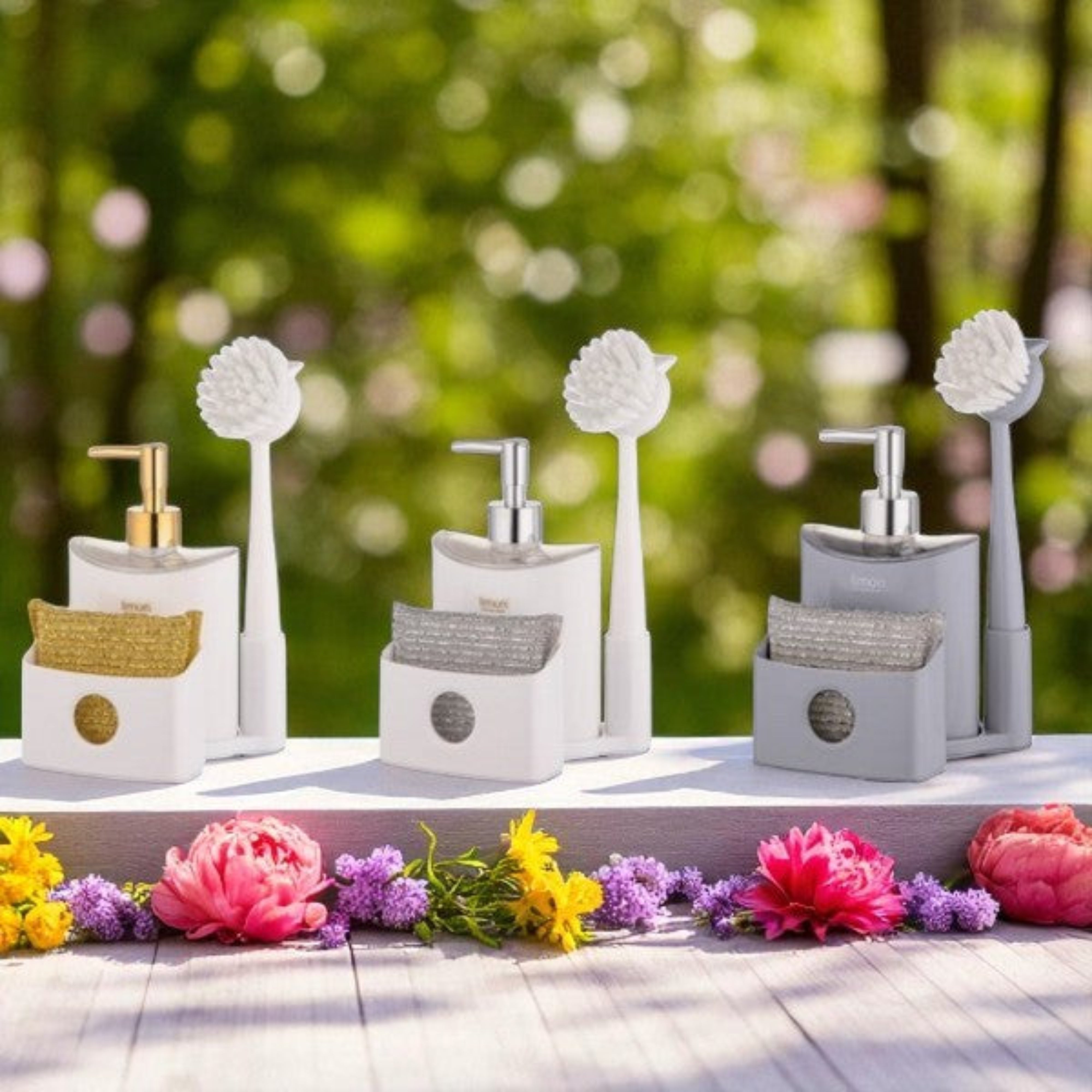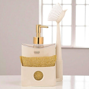 Streamline your sink area with the stylish and highly functional Limon Dishwashing Liquid Dispenser Set of 3. This all-in-one organizer features an elegant oval-shaped liquid dispenser, a dedicated cleaning brush, and a sponge, providing a complete solution for your dishwashing needs. Its intelligent design promotes hygiene and keeps your countertops beautifully clutter-free.