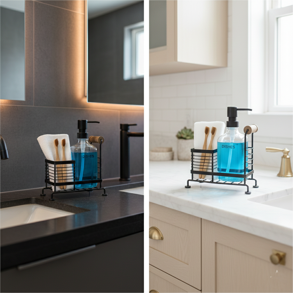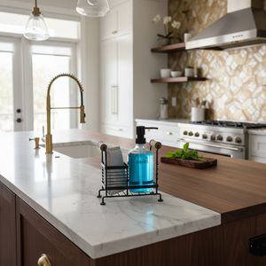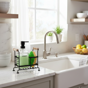 Space-Saving Design — organizes liquids and cleaning essentials in one compact frame to declutter the sink area.