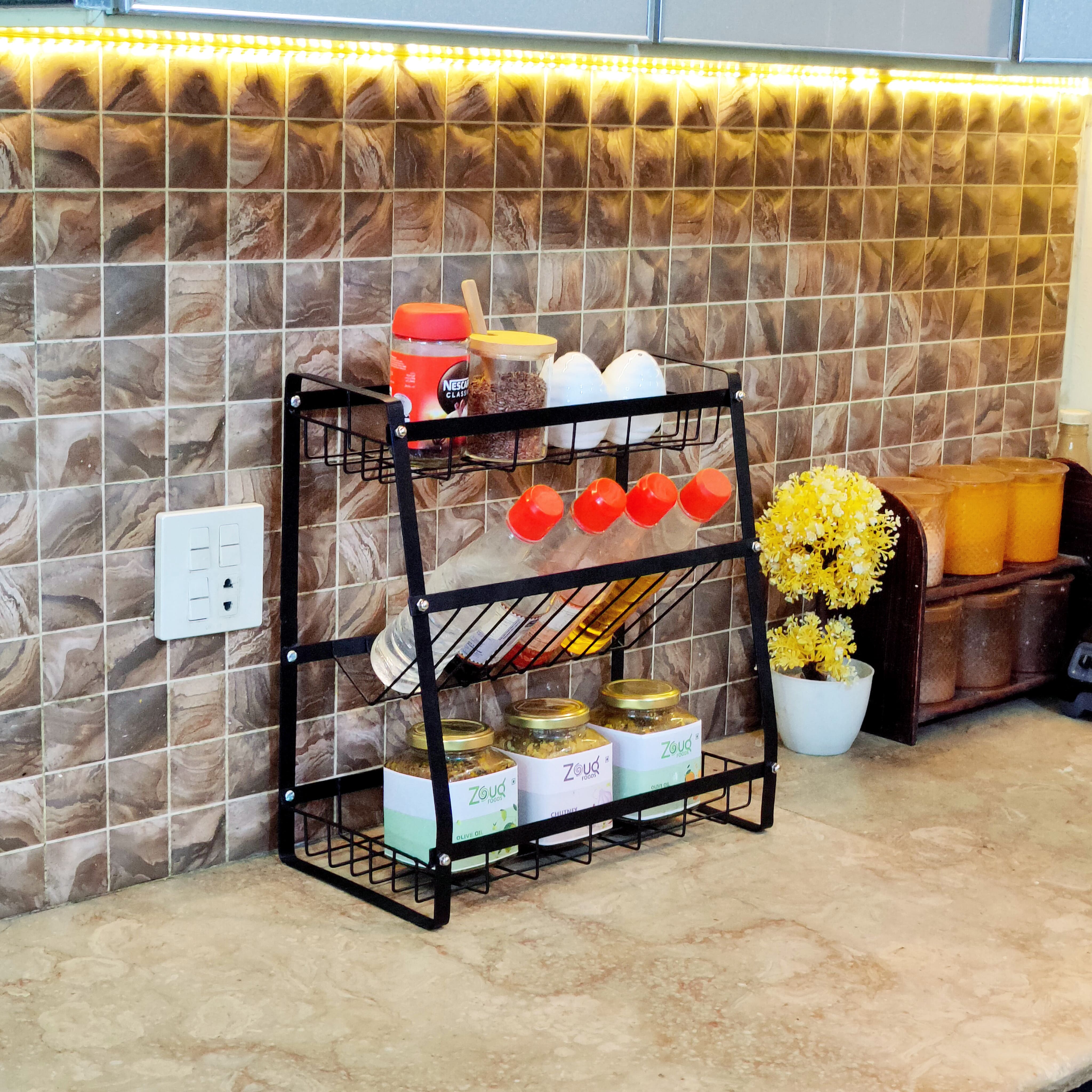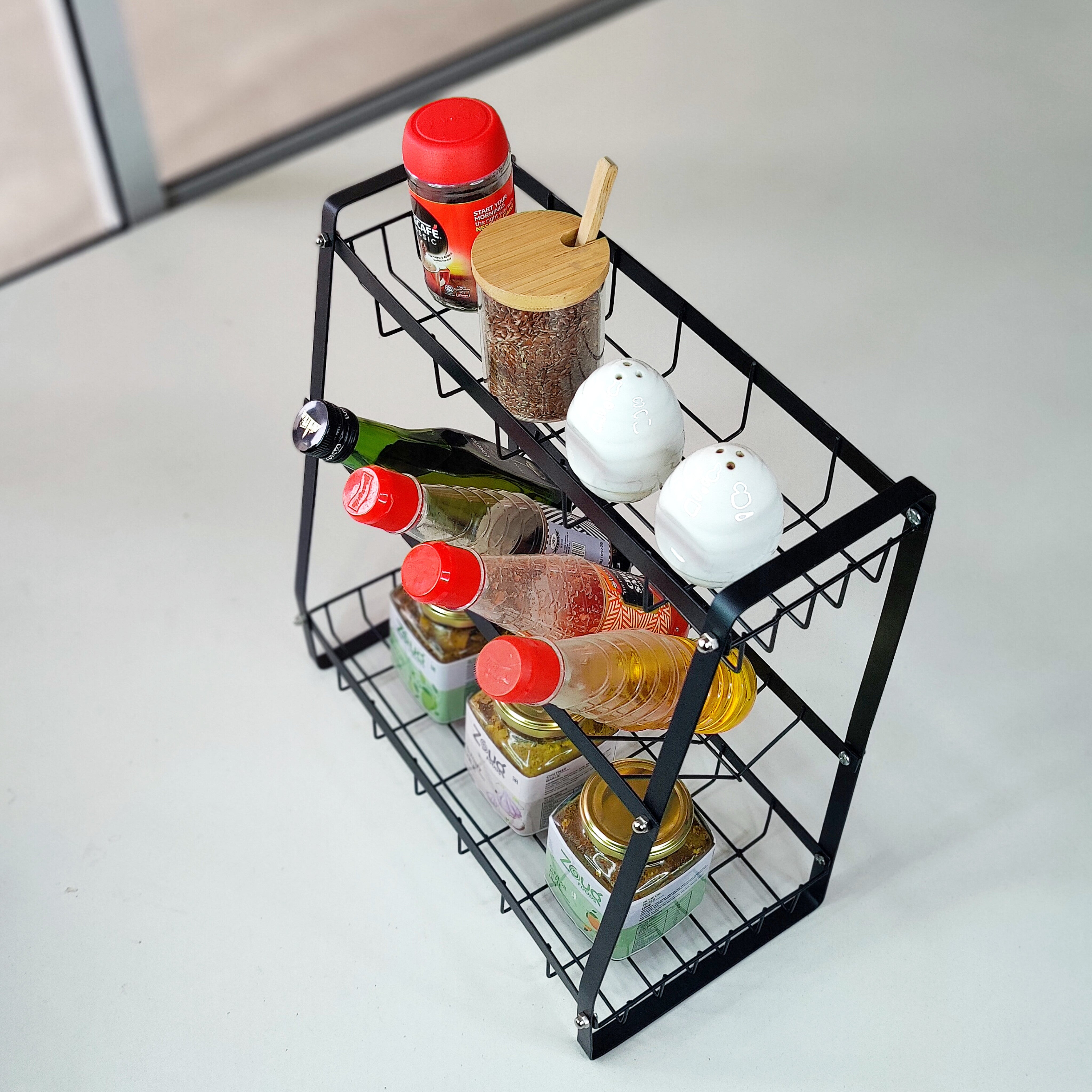 * High-Capacity Storage: With three layers of storage, this organizer provides ample space to store and organizer your kitchen essentials.