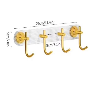 Upgrade your home organization with the Modern Gold Accented Self-Adhesive Wall Hooks. Designed with a sleek transparent base and luxurious gold hooks, this set of four offers both style and functionality. The strong self-adhesive backing ensures easy installation without the need for drilling, making it perfect for renters and homeowners alike. Ideal for bathrooms, kitchens, bedrooms, and entryways, these hooks help keep your space neat while adding a touch of elegance.