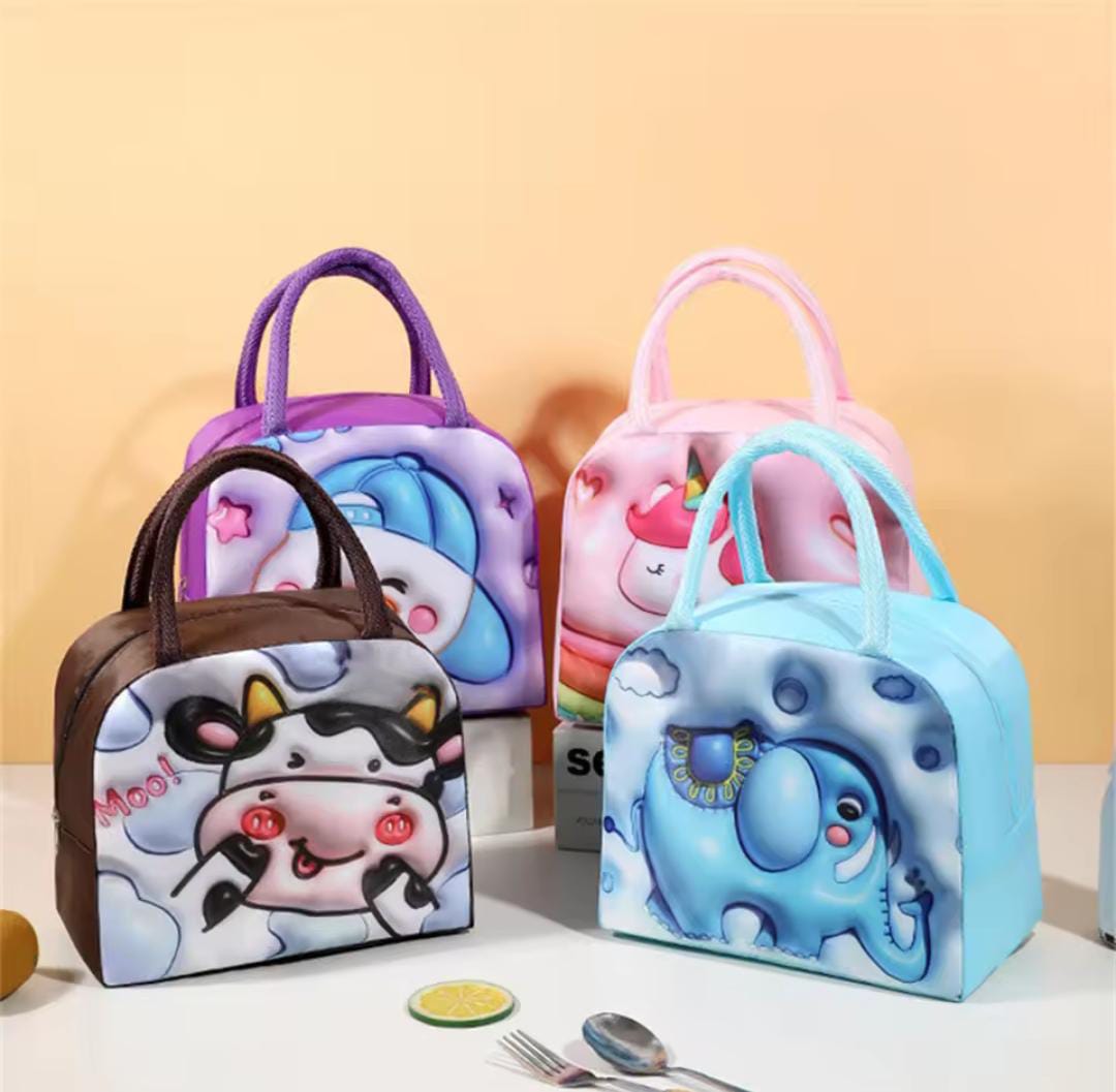 Colorful Cartoon Insulated Lunch Bags (Parachute Material) – Perfect for School & Travel