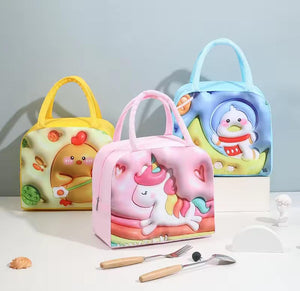 Make lunchtime more exciting with our Colorful Cartoon Insulated Lunch Bags, crafted from high-quality parachute material for extra durability and water resistance. Available in multiple adorable designs, these lunch bags let kids showcase their personalities—whether they love unicorns, space ducks, or foodie chicks! Lightweight, spacious, and insulated, they keep food fresh for hours, making them ideal for school, picnics, and travel.