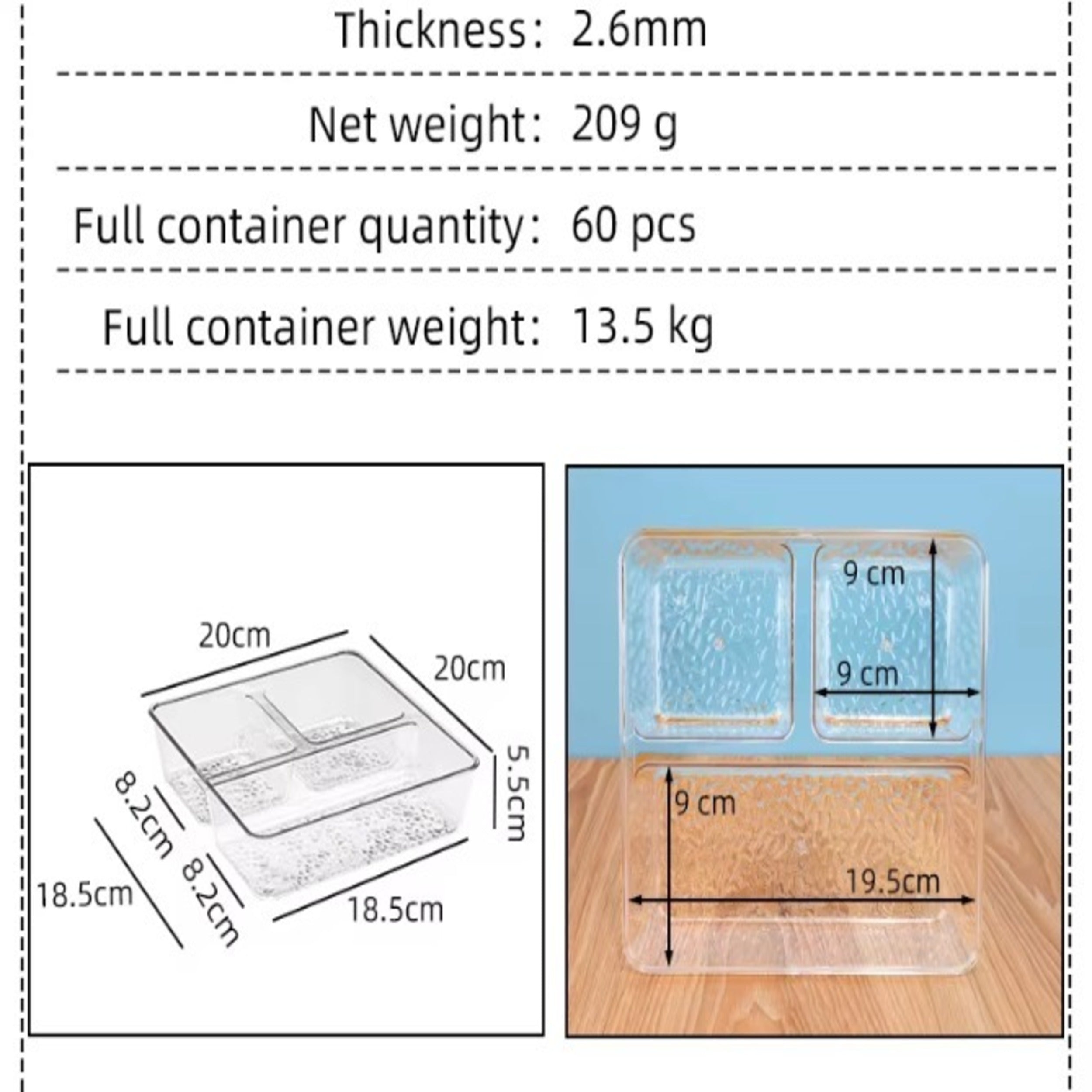 The Plastic Transparent Grid Organizer Tray is a versatile and practical storage solution designed to keep your essentials neatly organized. Made from high-quality PET plastic, this clear organizer offers a sleek, modern look while allowing easy visibility of stored items. With multiple grid compartments, it is perfect for sorting and storing a variety of household, office, and personal items. Its durable design ensures long-lasting use, making it a must-have for efficient organization.