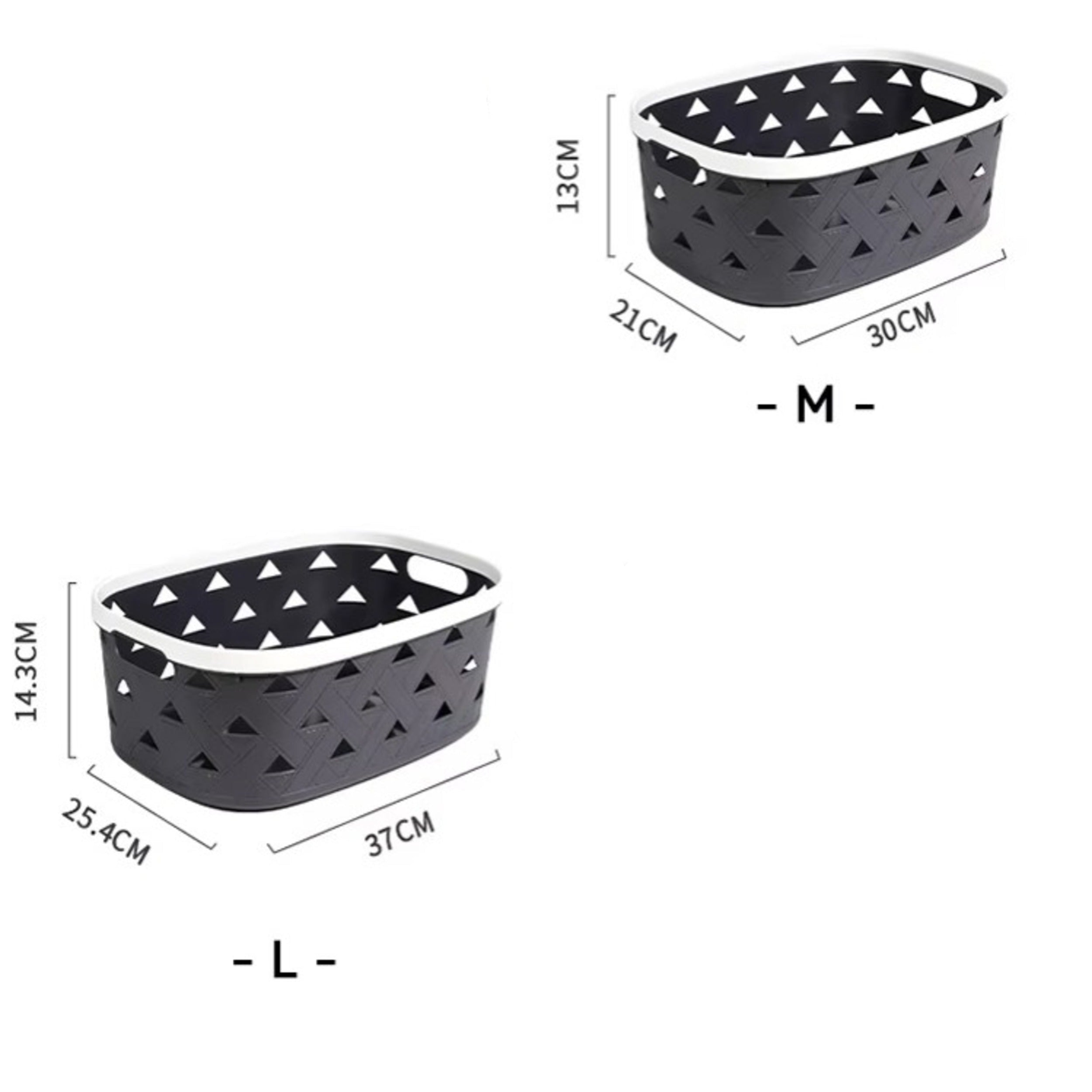 Organize your home effortlessly with the Premium Multi-Purpose Breathable Storage Basket with Handles. Designed for convenience, this stylish and durable basket is perfect for decluttering your kitchen, bathroom, living room, or office. The breathable cutout design ensures proper ventilation, preventing moisture buildup, while the sturdy handles make carrying easy. Available in two sizes – Medium (30cm x 21cm x 13cm) and Large (37cm x 25.4cm x 14.3cm) – this storage basket is an ideal solution for organizing household essentials, groceries, toys, toiletries, and more.