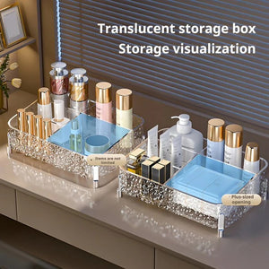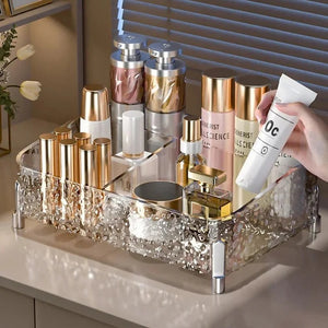 Organize your makeup and beauty essentials with elegance using the FrostedGlow Acrylic Makeup Organizer. Crafted from high-quality acrylic, this organizer features a glacier-inspired frosted design that adds a luxurious touch to your vanity or dresser. It provides ample space for cosmetics, brushes, and accessories while keeping everything neatly arranged and easily accessible. Perfect for everyday use or as a stylish gift for beauty enthusiasts.