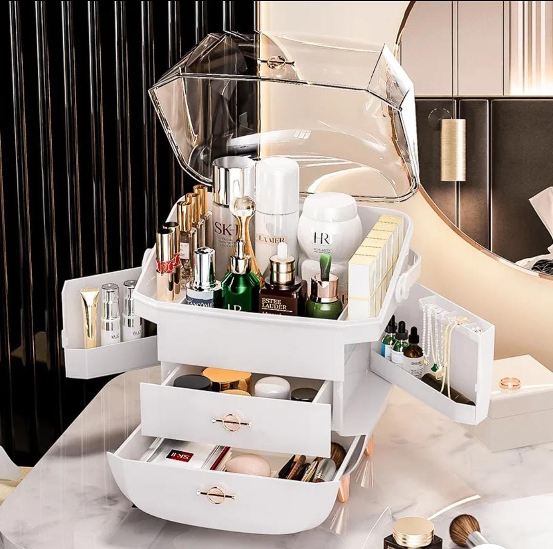 4. Multiple uses: Store cosmetics, skin care products, eyebrow pencils, mascaras, makeup brushes, lipsticks, eyeliners, blushes, hair accessories, nail polish, lotions, perfumes, jewelry, mobile phones, etc.