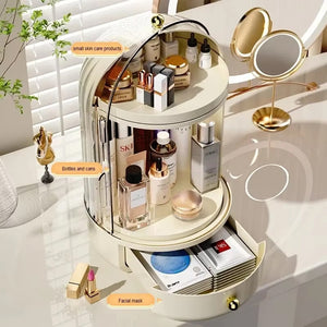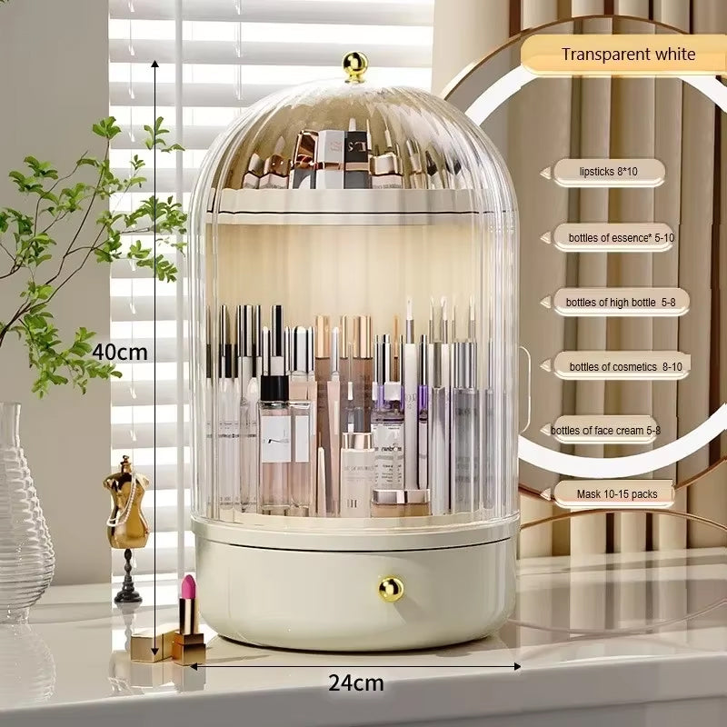 - 【Neatly Skincare Organizer& Large Capacity】 The large capacity cosmetic organizer allow you to organize your cosmetics in a neat and orderly way. It can store 14 bottles of lotion , 8 bottles of perfume or body spray , 6 boxes of loose powder and 20 pcs facial mask on the makeup drawer, with an EXTRA LIPSTICK HOLDER, which can hold 8 lipsticks.