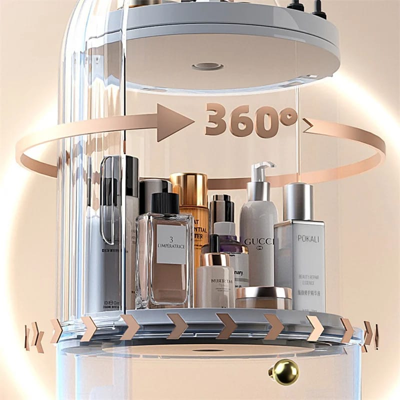 - 【 360 Makeup Rotating Organizer Design】Vanity spinning makeup organizer allows you to easily access all of your makeup and skincare products without hassle, saving you time without the hassle of searching through a cluttered vanity in the morning.