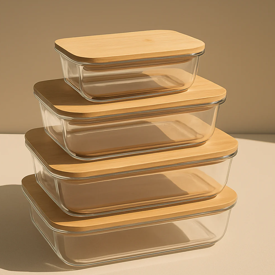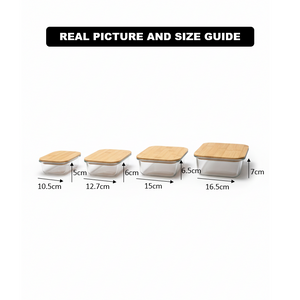 4Pcs Airtight Bamboo-Lid Glass Bowls Set – Rectangle