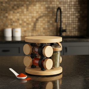 The Limon Wooden 360° Rotating Glass Spice Jars Set is a stylish and practical kitchen storage solution designed for everyday cooking. The set includes clear glass jars with wooden lids, all organized on a 360° rotating wooden and metal stand. This setup allows for easy access, instant visibility of contents, and a tidy, space-saving organization of spices, herbs, pulses, nuts, and other dry ingredients. Perfect for countertops, pantries, or gift-worthy kitchen setups, this set blends functionality with aesthetic appeal.