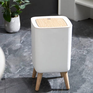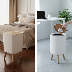Upgrade your home with the Spacious Trash Bin with Press-Lid & Feet. This elegant, modern container is designed to transform waste disposal into a seamless part of your décor. It features stylish wooden feet and a matching wooden press-lid that operates with a hygienic one-touch motion. Combining large capacity with a secure odor-seal, this bin fits beautifully into any contemporary kitchen, living space, or office, keeping your home tidy and fresh.