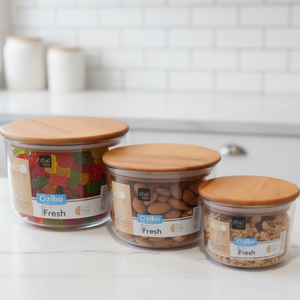 Upgrade your kitchen storage with the LuxeStack Glass Bowl with Wooden Lid by Ziba. Combining elegance and functionality, this premium bowl allows you to store dry goods, snacks, or ingredients while keeping your space organized. The stackable design maximizes storage efficiency, and the crystal-clear glass with a natural wooden lid adds a modern, stylish touch. Perfect for home kitchens, pantries, or offices, LuxeStack brings luxury, practicality, and durability to your storage solutions.