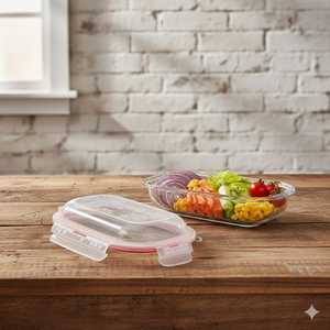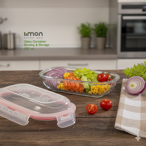 The MicrowaveMate Glass Container is a premium storage solution crafted for modern kitchens. Its elegant oval design, crystal-clear glass body, and airtight plastic sealing lid keep your food fresh, organized, and beautifully displayed. Available in two practical sizes, this versatile container is not only durable and eco-friendly but also safe for microwave use (without the lid).