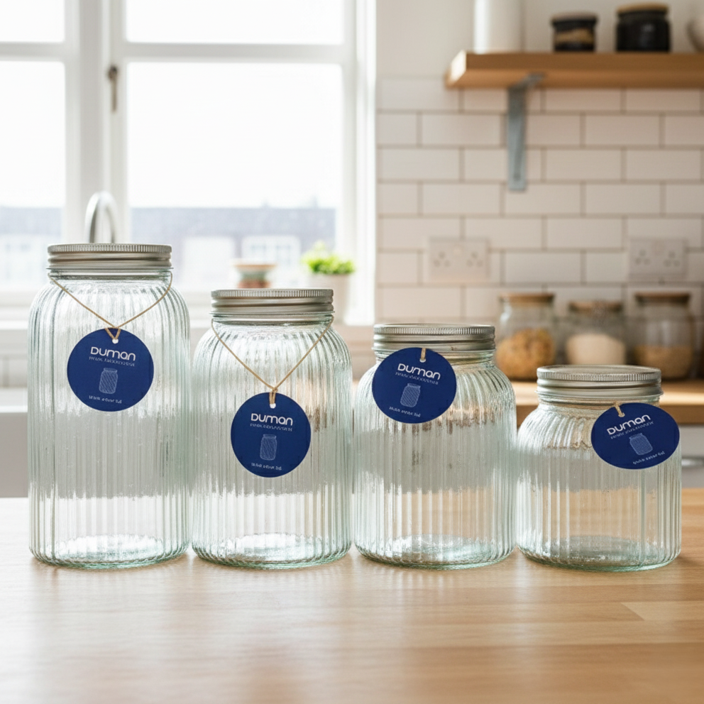 Organize your home in style with the SilverTop Glass Storage Jars by Duman — a sleek and versatile storage solution designed for modern living. Each jar features a premium glass body paired with a sleek silver-colored lid, creating a clean and elegant look perfect for any kitchen or storage setup. Ideal for both practical use and visual appeal, these jars combine durability, transparency, and sophistication, making them suitable for everyday essentials or decorative countertop display.