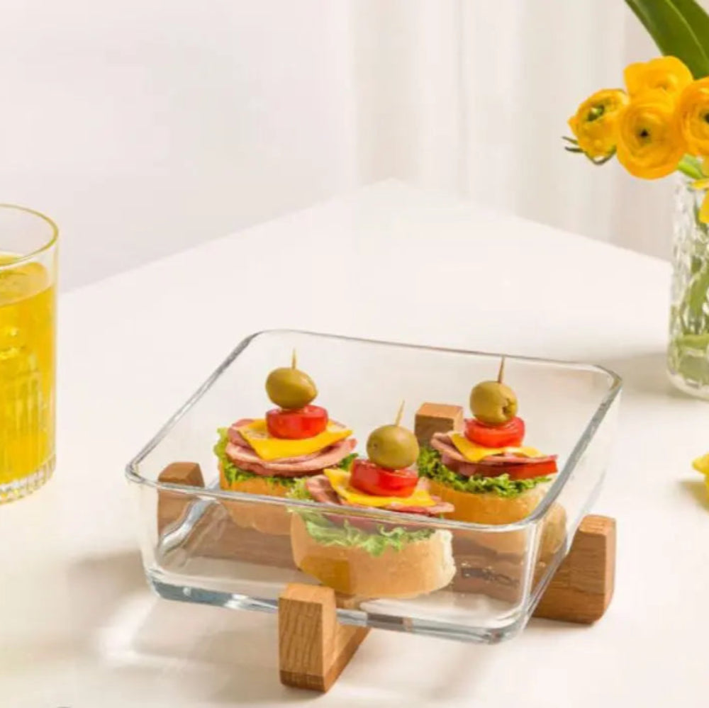SnackEase Wooden X-Base Server with Glass Dish (2163) by Limon