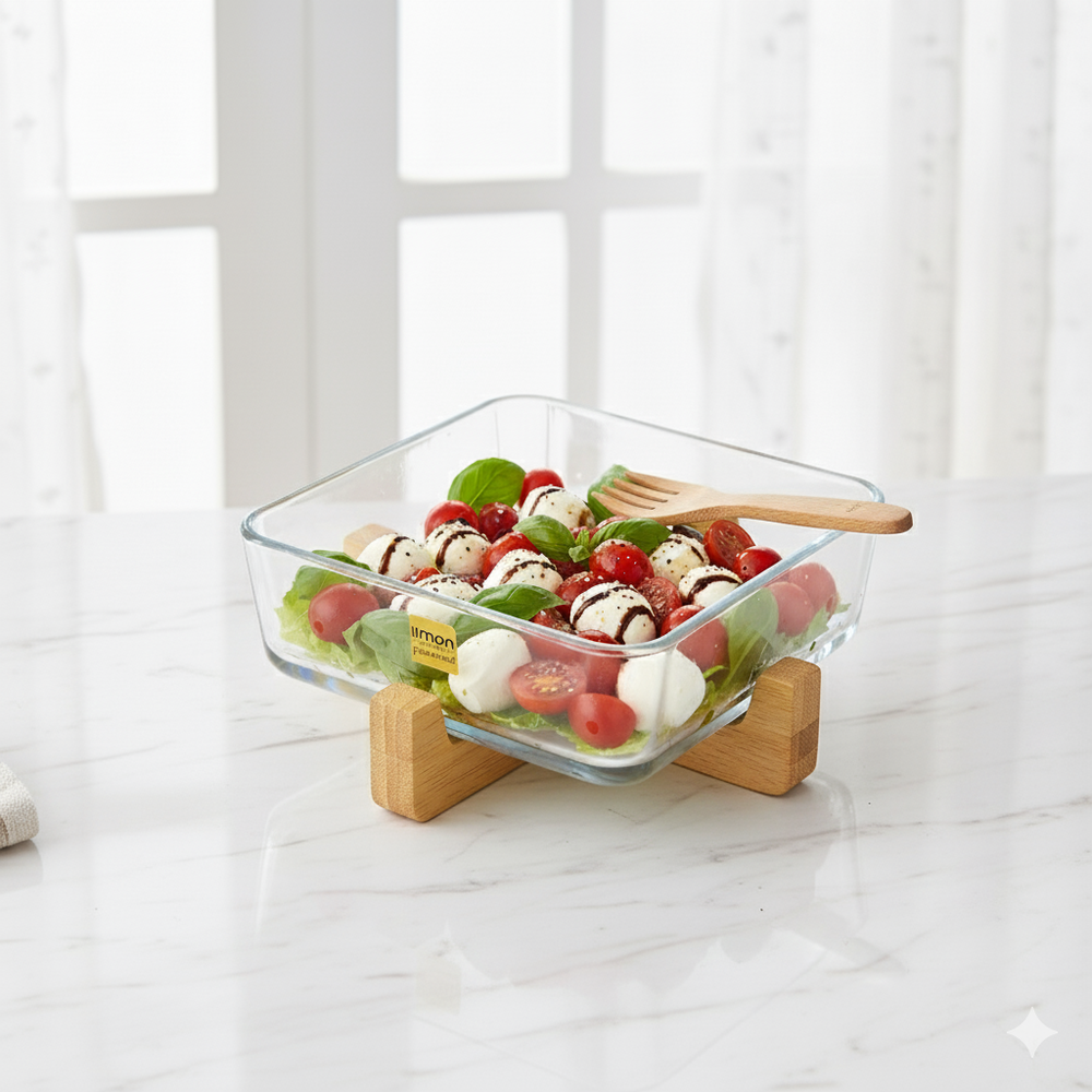 - Clear glass dish keeps food fresh and beautifully displayed.