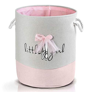 This is a single fabric storage bin designed for a child's room, specifically with a "little girl" theme. It serves as a laundry basket or general storage container. The bin is made of a soft, collapsible material, likely cotton or a cotton blend, and features a two-tone color scheme with a lighter top section and a darker bottom section. It has a printed design featuring a ballerina and the phrase "little girl" in cursive script. The bin has rope handles for easy carrying and a soft, rounded shape.