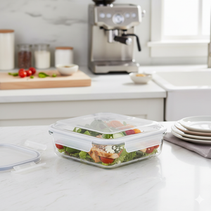 The LuxeSeal Glass Container is a premium 2.1-liter storage solution designed for modern kitchens. Crafted from high-quality glass with an airtight sealing lid, it keeps food fresh, organized, and visible at a glance. Perfect for cereals, grains, snacks, or leftovers with a touch of elegance. Microwave-safe and durable, it offers both style and convenience.