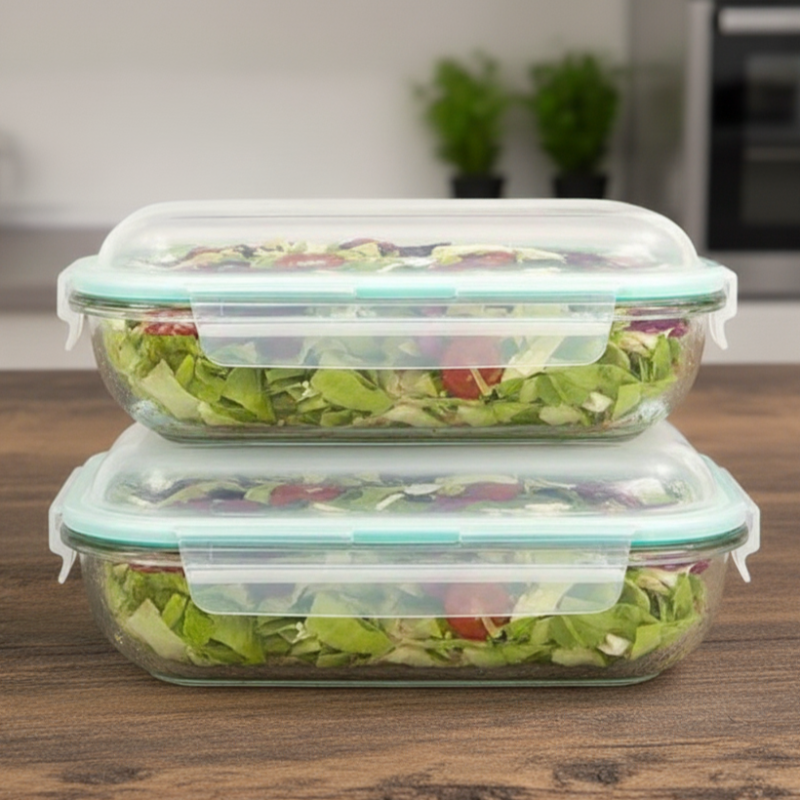 The MicrowaveMate Glass Container is a premium storage solution crafted for modern kitchens. Its elegant oval design, crystal-clear glass body, and airtight plastic sealing lid keep your food fresh, organized, and beautifully displayed. Available in two practical sizes, this versatile container is not only durable and eco-friendly but also safe for microwave use (without the lid).