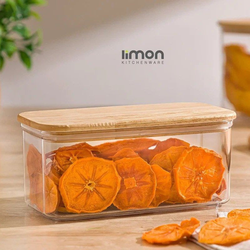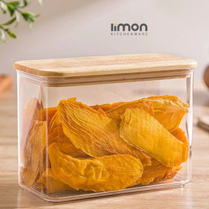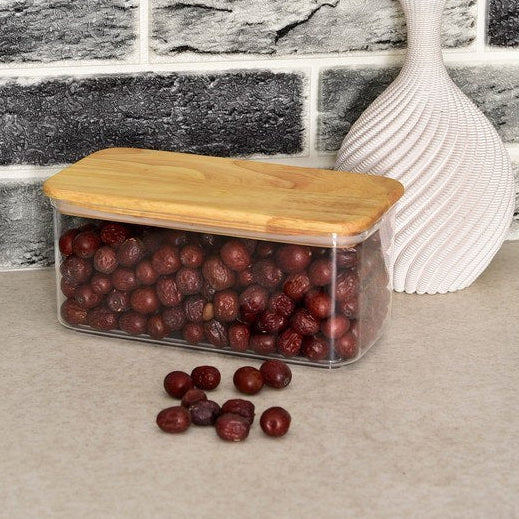 Keep your kitchen essentials neatly stored and beautifully displayed with the Rectangular Airtight WoodTop Canister by Limon. This premium rectangular canister combines modern elegance with natural charm, featuring a clear, durable body and a wooden airtight lid that locks in freshness. Ideal for organizing dry ingredients like tea, sugar, coffee, snacks, or grains, it fits seamlessly into any kitchen setup — from minimalist to contemporary. Available in Medium and Large sizes to suit your storage needs.