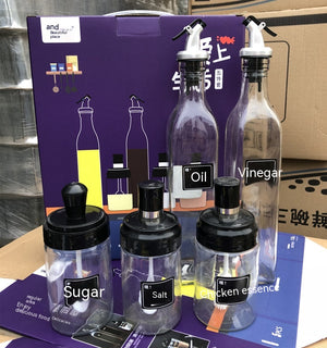 5 piece Set Oil Bottle and Spice Jar