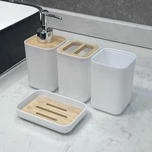 Bring harmony, style, and practicality to your daily routine with the AquaCharm 4-Piece Bathroom Accessory Set.