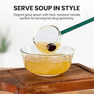 The CrystalClear Colored Glass Soup & Dessert Ladles are elegant, durable, and heat-resistant kitchen essentials designed for both functionality and style. Made from high-quality borosilicate glass, these ladles can withstand high temperatures without cracking, making them perfect for serving hot soups, herbal teas, desserts, and more. The crystal-clear design with a comfortable ergonomic handle adds a refined touch to your kitchen while ensuring ease of use.