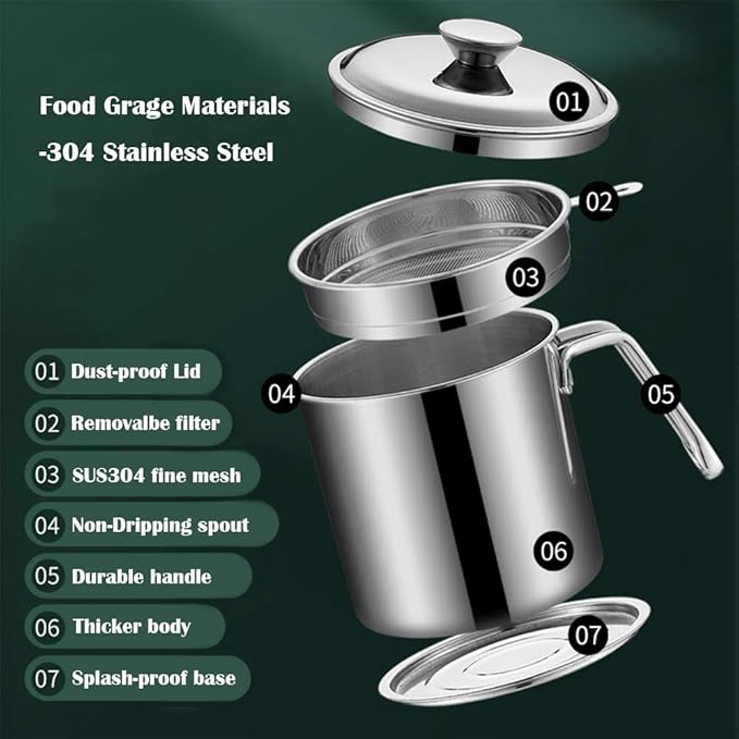Premium Stainless Steel Oil Filter Pot with Fine Mesh Strainer