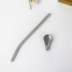 Reusable Curved Steel Straw with Herb Infuser Tip