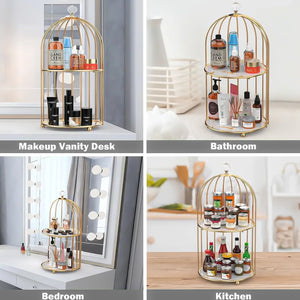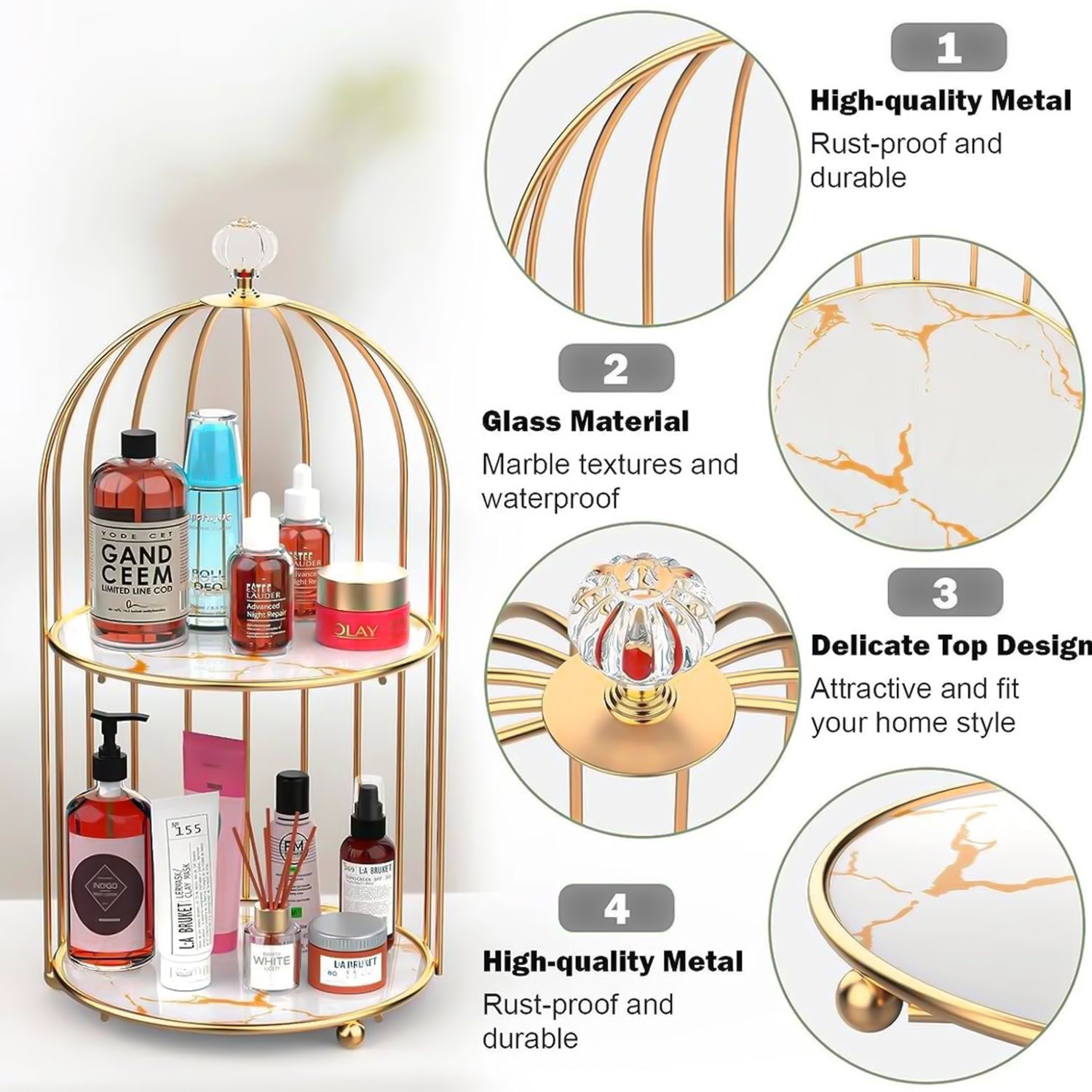 The 2-Tier Golden Vanity Cage by Matrix is a sophisticated and space-saving organizer that adds a touch of glamour to any vanity or countertop. This elegant piece blends functionality with a luxurious aesthetic, making it perfect for organizing cosmetics, skincare, and other beauty essentials.