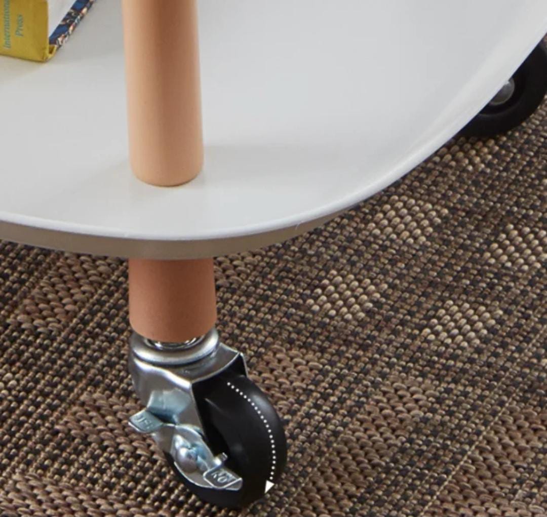 Push to go, press to stop, using solid wood pillars and adjustable universal wheels. Easy to install, using high-quality plastic solid version, chamfered groove design effectively prevents items from rolling off, stains can be wiped clean immediately, and the spray painted armrest feels smooth