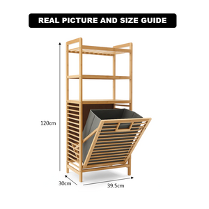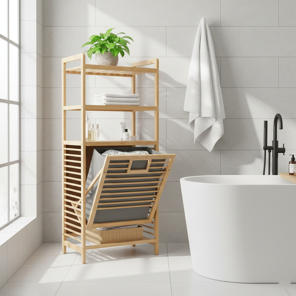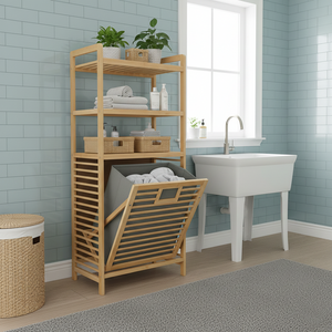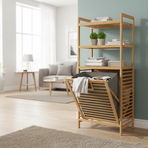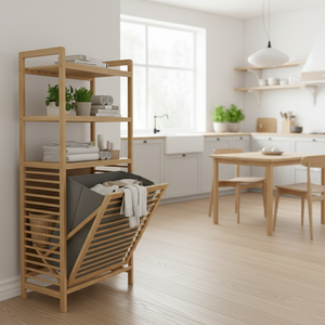 The 3‑Tier BambooStack Laundry Tower is a stylish, eco-friendly solution for organizing and storing laundry in your home. Made from durable natural bamboo, its three spacious tiers allow for efficient sorting — such as separating lights, darks, and towels, or clothing, blankets, and linens. The vertical design maximizes floor space while adding a warm, organic aesthetic to bedrooms, bathrooms, or laundry areas. This tower combines practicality with décor, making laundry routines simpler, cleaner, and more organized.