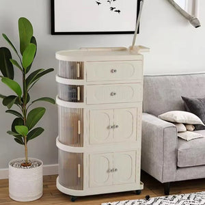 Keep your home neat and stylish with the 4-Tier Freestanding Storage Organizer with Wheels. Designed for maximum versatility, this organizer combines drawers, cupboard-style storage, and acrylic movable display windows on one side, making it perfect for baby supplies, toys, or household essentials. The top two tiers are compact drawers for smaller items, while the bottom two tiers offer larger cupboard-style openings for bulkier storage. Its freestanding design and smooth-rolling wheels make it easy to move between rooms, offering convenience wherever you need it.