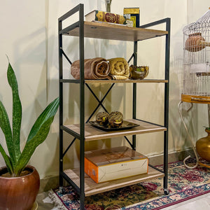 Transform any wall of your home with the 4-Tier Universal Storage Rack by Matrix — a seamless blend of modern design, sturdy construction, and everyday functionality. Crafted to adapt to multiple spaces, this versatile rack ensures your essentials stay organized, visible, and stylishly presented. From kitchens and lounges to offices and entryways, its elevated design, warm wood-textured shelves, and sleek black frame bring both utility and elegance into your living space.