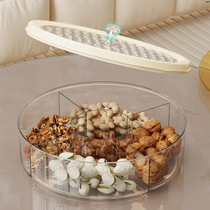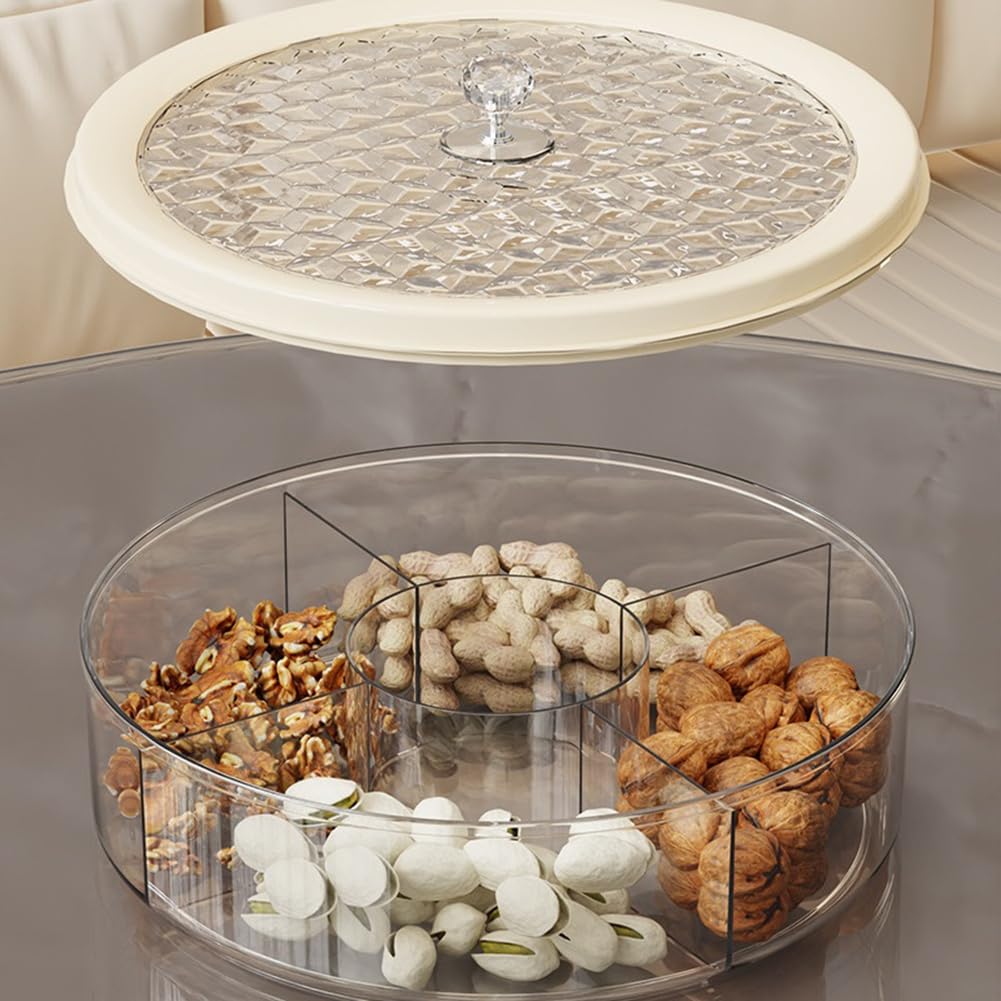 The 5-Partition CrystalAura Entertaining Platter adds a touch of sophistication to your serving setup. Designed with a sleek, circular form and multiple sections, it beautifully organizes snacks, nuts, candies, or condiments. The clear body and textured lid topped with a crystal-style knob make it both practical and visually striking — a centerpiece for any coffee table or gathering.