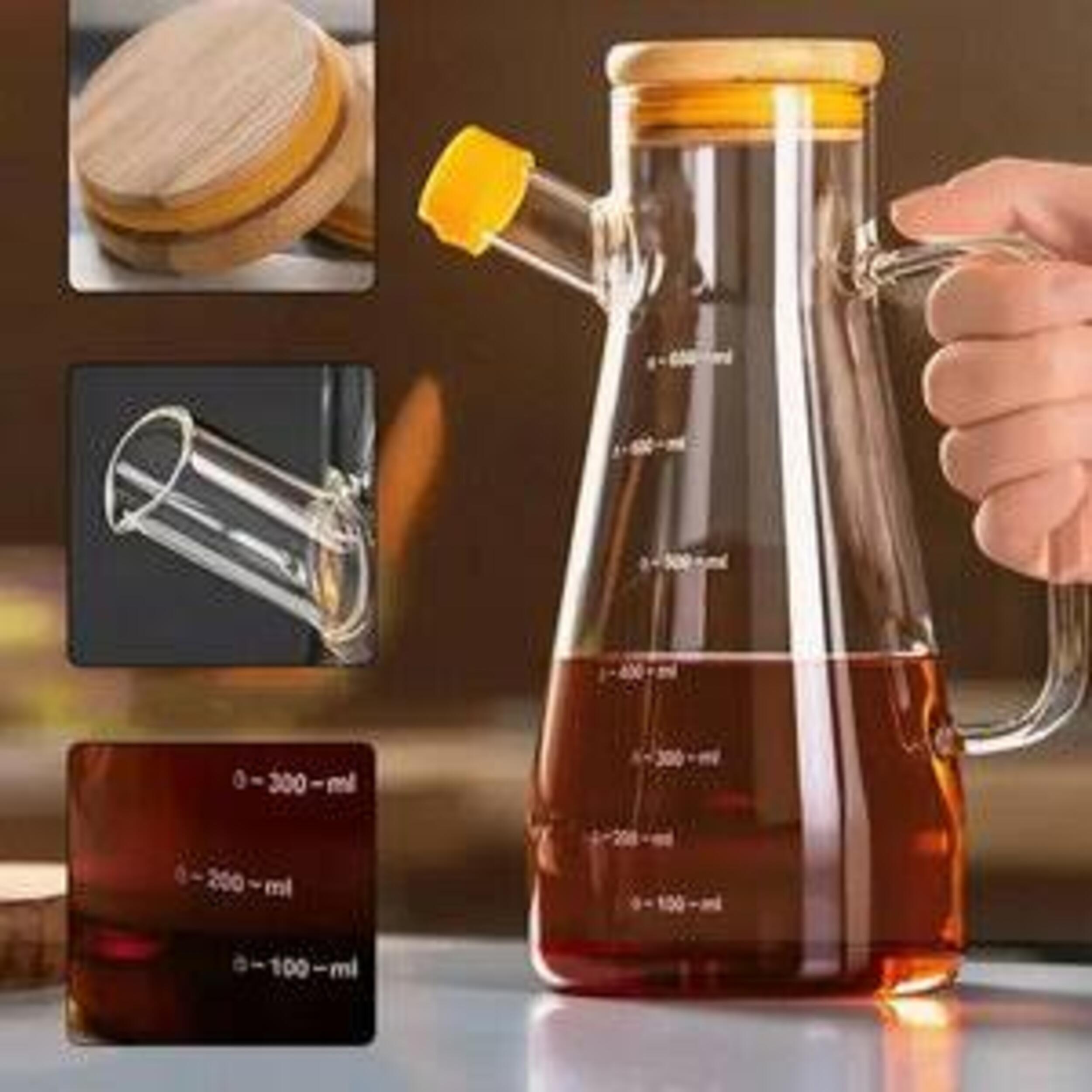 900ml Airtight Oil Jug with Wooden Lid & Precision Pour Stopper