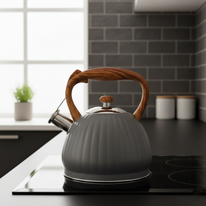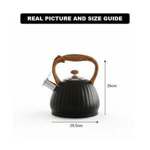The BoilAlert Textured Whistling Steel Kettle (3Liter) is a stylish and functional stovetop kettle designed to boil water quickly and safely while adding a modern touch to your kitchen. Made from durable stainless steel with a textured black finish, this kettle not only enhances your countertop but also delivers reliable performance. Its built-in whistling spout alerts you the moment the water reaches boiling point, making it effortless to brew tea, coffee, or other hot beverages. The ergonomic wood handle ensures safe and comfortable pouring, and the kettle is compatible with gas, electric, and induction cooktops.