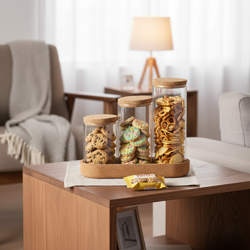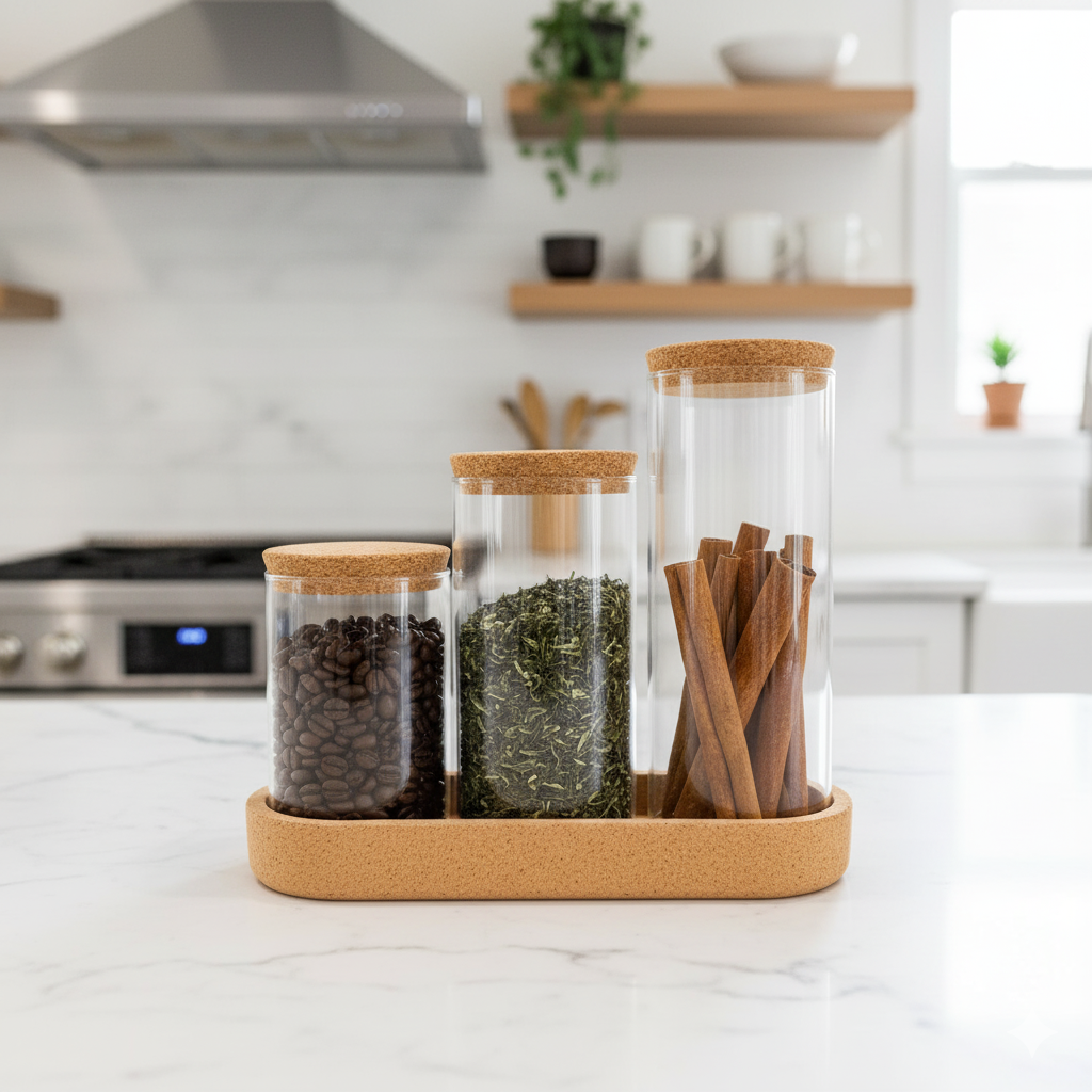 - Coordinated Cork Tray: Keeps jars neatly aligned and prevents slipping or spills.