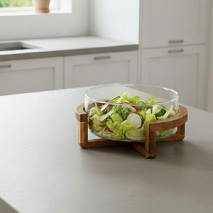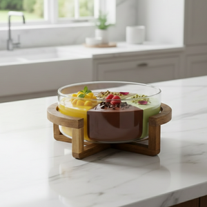Enhance your kitchen and dining experience with the Classy Glass Serving Bowl with Wood Stand — a stylish and versatile serving set ideal for everything from popcorn, snacks, oatmeal, salads, dips, and seasonings to everyday meals. Crafted for both casual family use and entertaining guests, this elegant bowl combines practicality with modern design to elevate your tabletop.Made from clear, durable glass that shows off your food beautifully, the bowl sits securely on a natural acacia wood base, giving it a rustic yet contemporary appeal. Whether you’re hosting movie nights, serving up hearty breakfasts, or displaying fresh fruit, this serving bowl is a must-have kitchen staple.