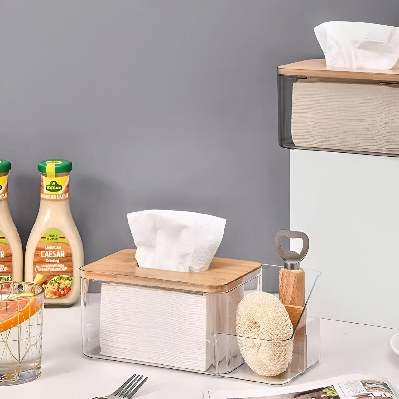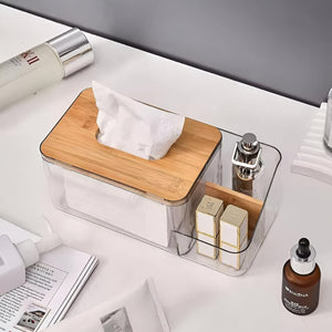 ClearView Wooden Lid Tissue Box with Dual Compartments