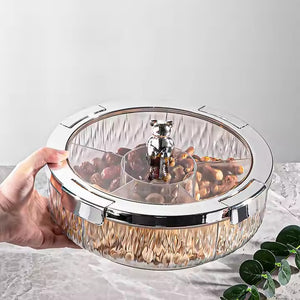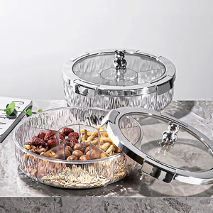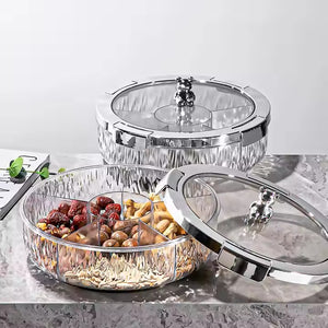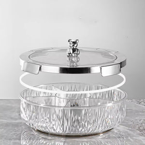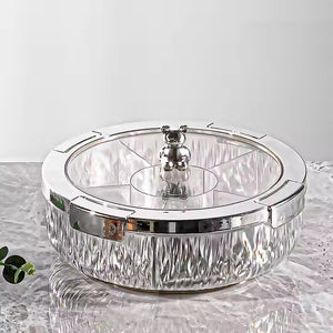 Add a touch of playful elegance and organized charm to your gatherings with our Deluxe Snacks & Candy Tray with Bear Top & Airtight Lid. This delightful serving dish is perfect for presenting an array of treats, dried fruits, nuts, candies, or appetizers in a beautifully compartmentalized fashion. Crafted from high-quality, transparent material, the tray features a stylishly textured "crystal-look" base that catches the light, while the clear lid allows for easy viewing of contents.
